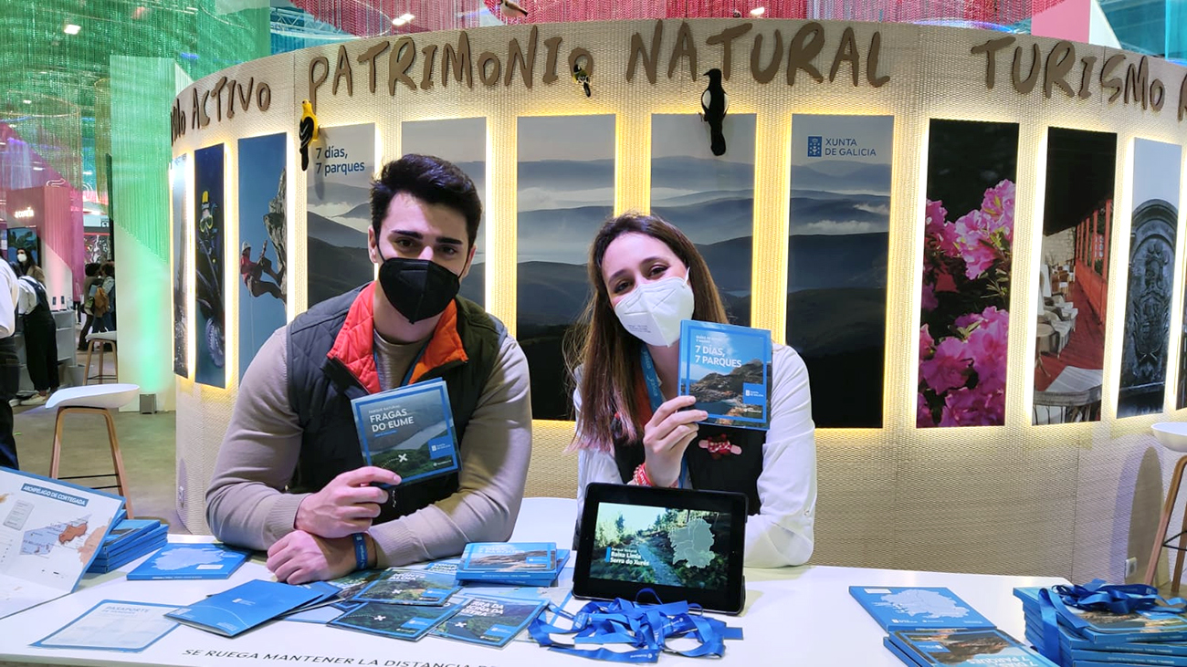 En el marco del Stand de Galicia la Consellería de Medio Ambiente, Territorio e Vivenda presentó “7 días, 7 parques”, en el que se invita a gallegos y visitantes a recorrer a lo largo de este año los seis parques naturales y el Parque Nacional, e informaron sobre un premio de un fin de semana para dos personas en un alojamiento del área de influencia de estos espacios para los 20 primeros que consigan visitar los 7 emplazamientos.